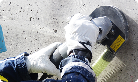 リフォームや配線の際にコンクリートを削って取り壊す、斫り工事にも対応。どこまで削るのか、方向はどうするかもしっかりと考慮し、慎重に作業を行います。